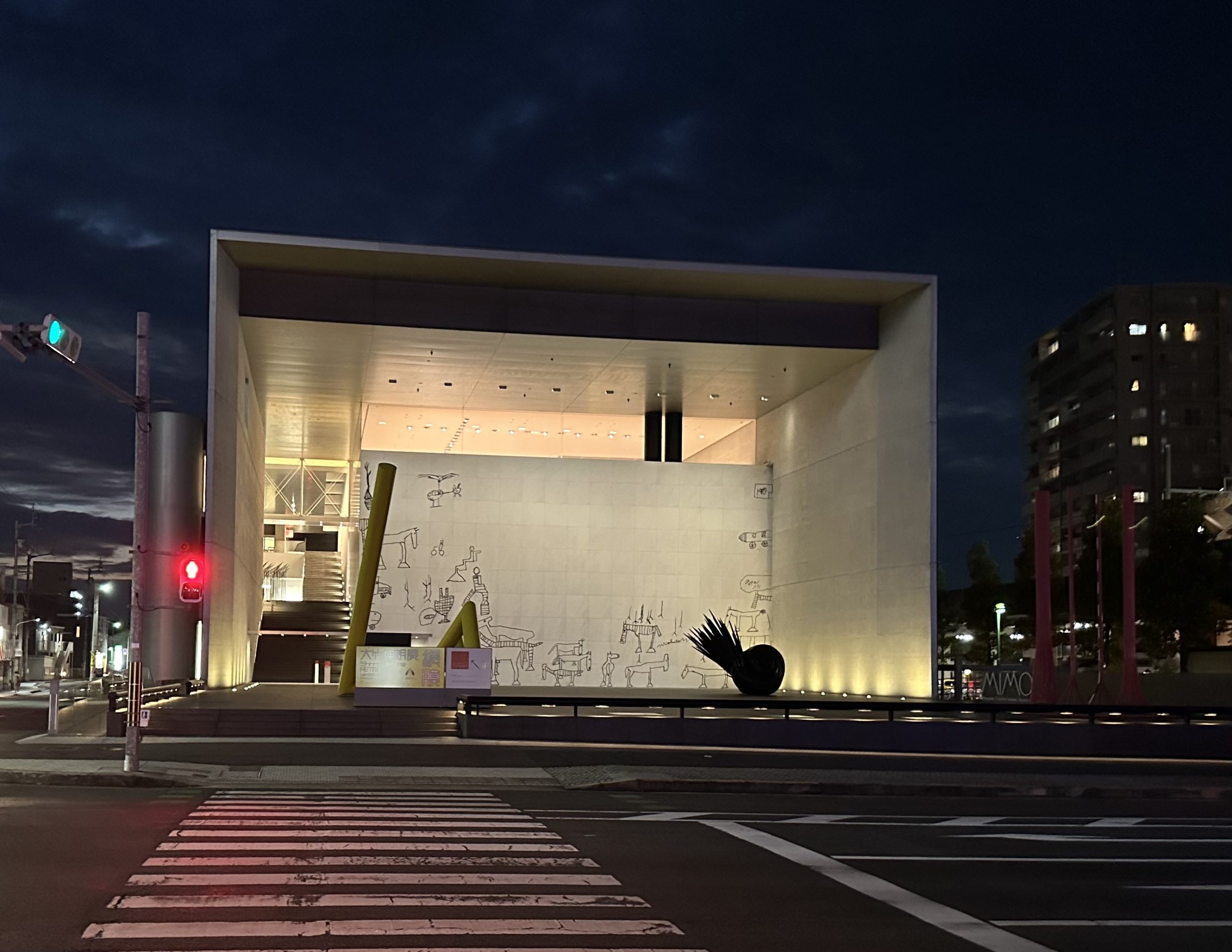 丸亀美術館の夜景。駅の前に美術館があるのは珍しい。