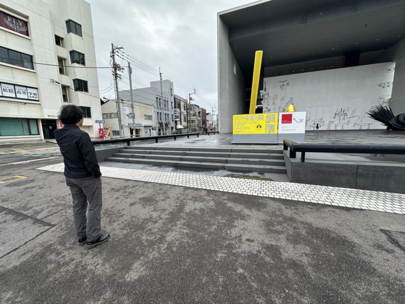 美術館横の最上階までつながる大階段
