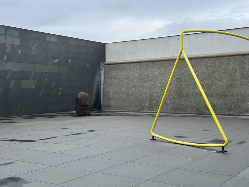 最上階のカフェから見える滝とイサムノグチのオブジェ