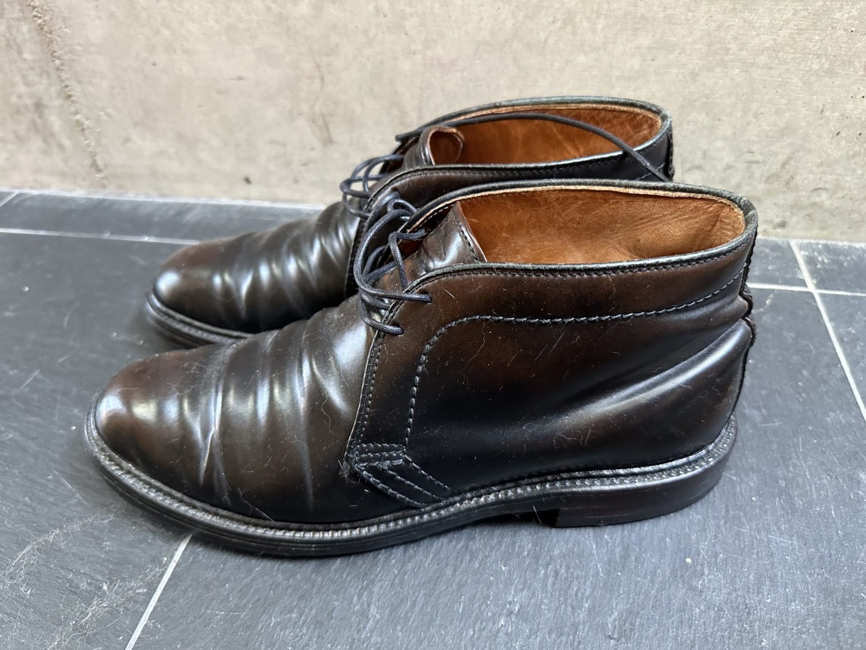 はい。 USA製のオールデンのコードバンのチャッカブーツです。 私はブーツ好きで、特にこれはお気に入りで10年以上履いています。 デメリットと言えば、とても重い…
