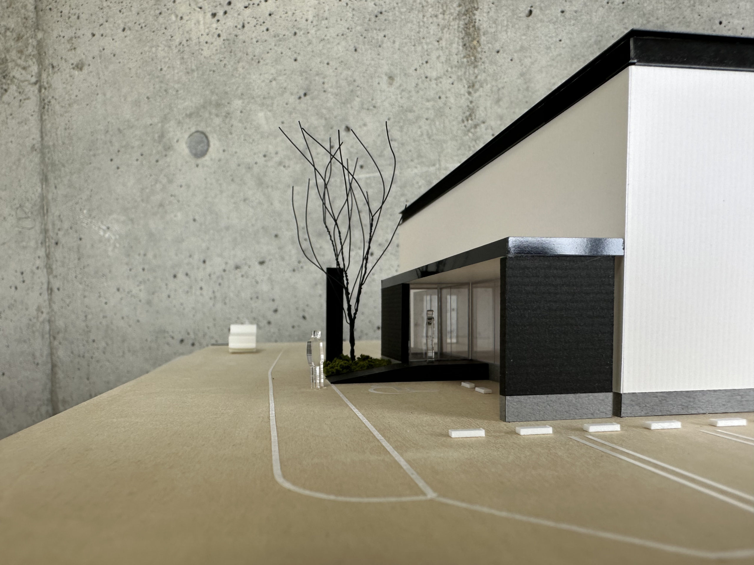 はい。 熊本の眼科医院の最終案です。 ゴールドの外壁をご提案しましたが、施主の希望でモノトーンでまとめることになりました。 これはこれでいい感じだと思います。 …