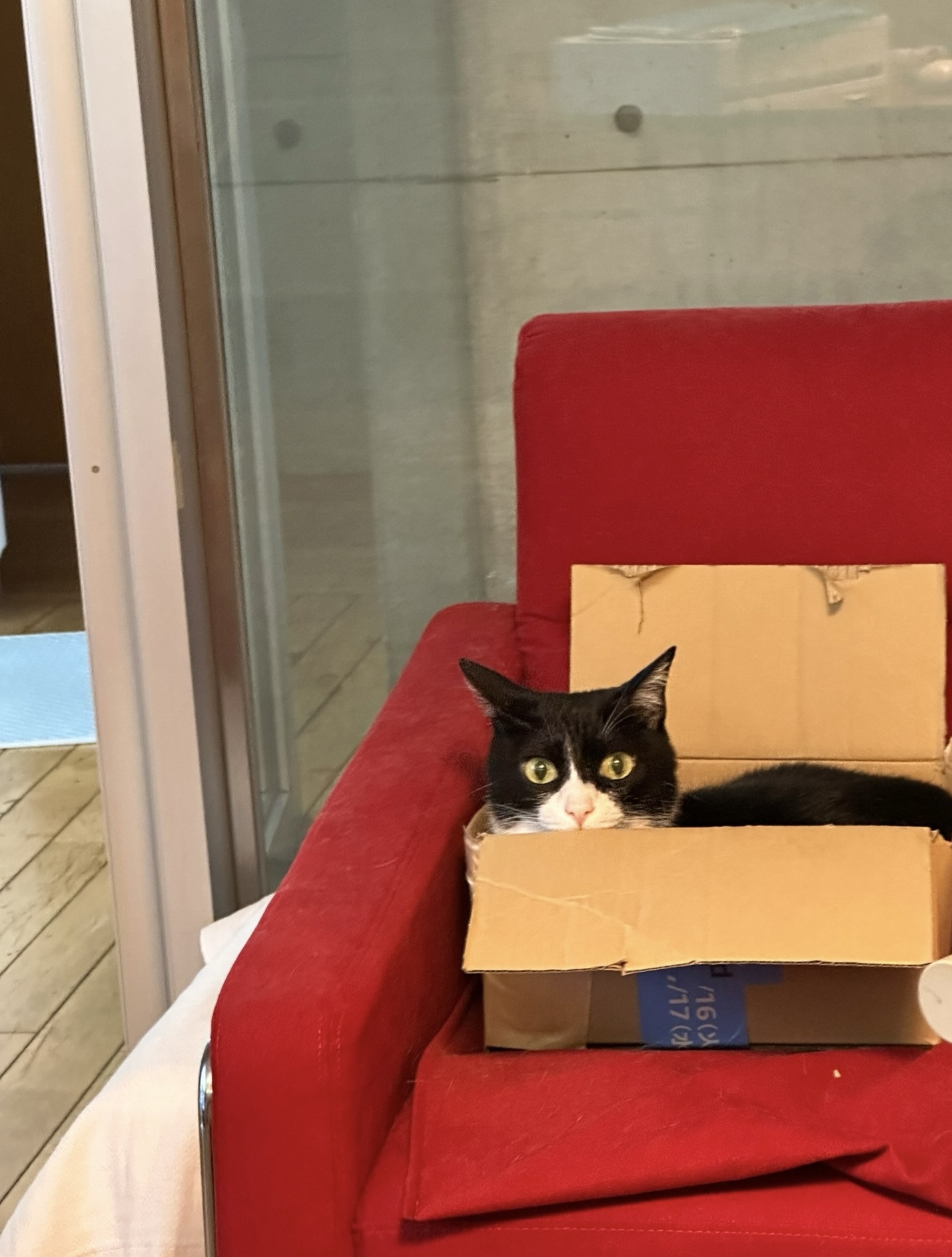 はい。銀ちゃんお気に入りの段ボール箱を食事中の隙に音ちゃんに横取りされました。 仕方なくもう一つ段ボール箱を新調しました。 ①銀ちゃんのお気に入り段ボール箱。サ…