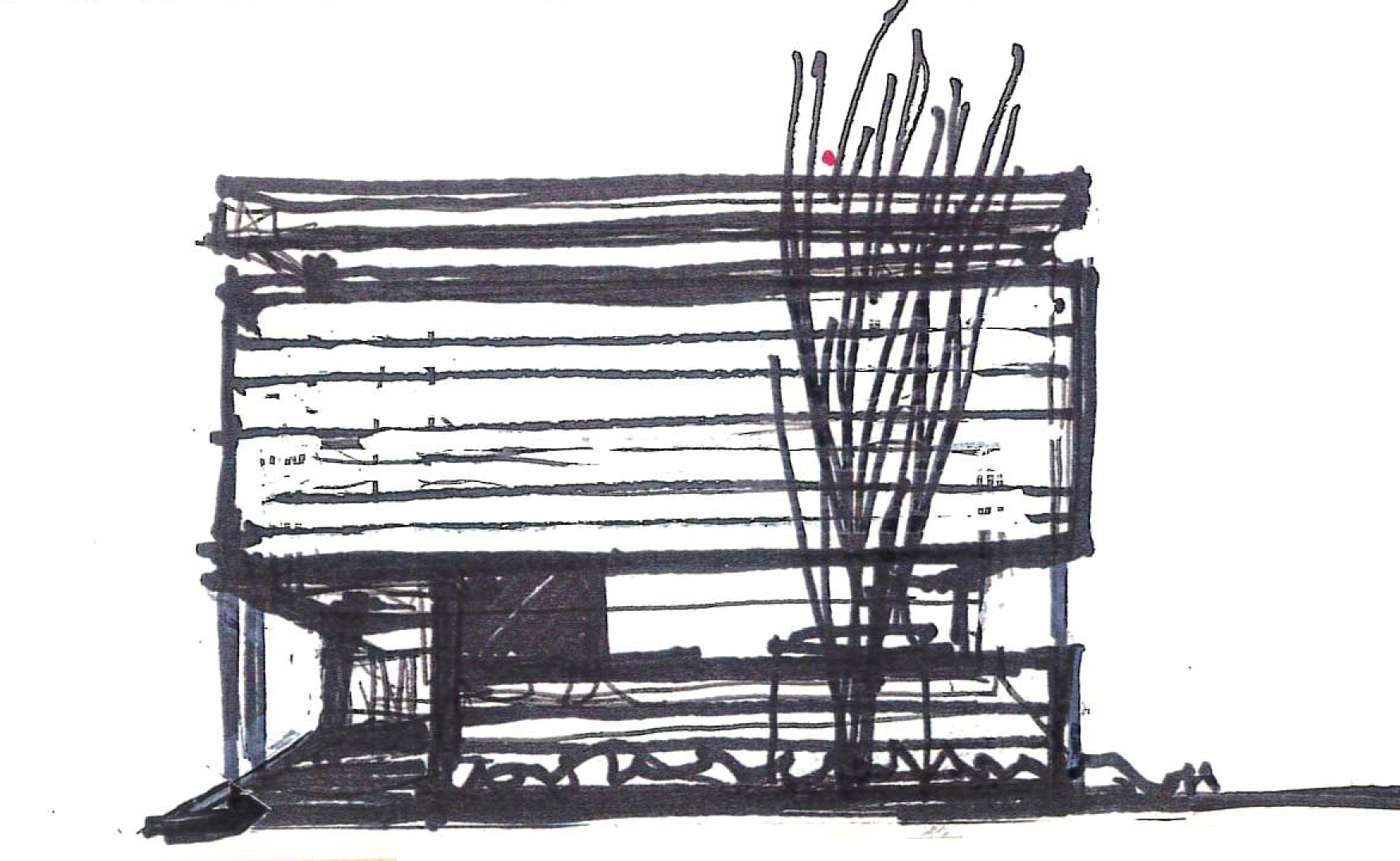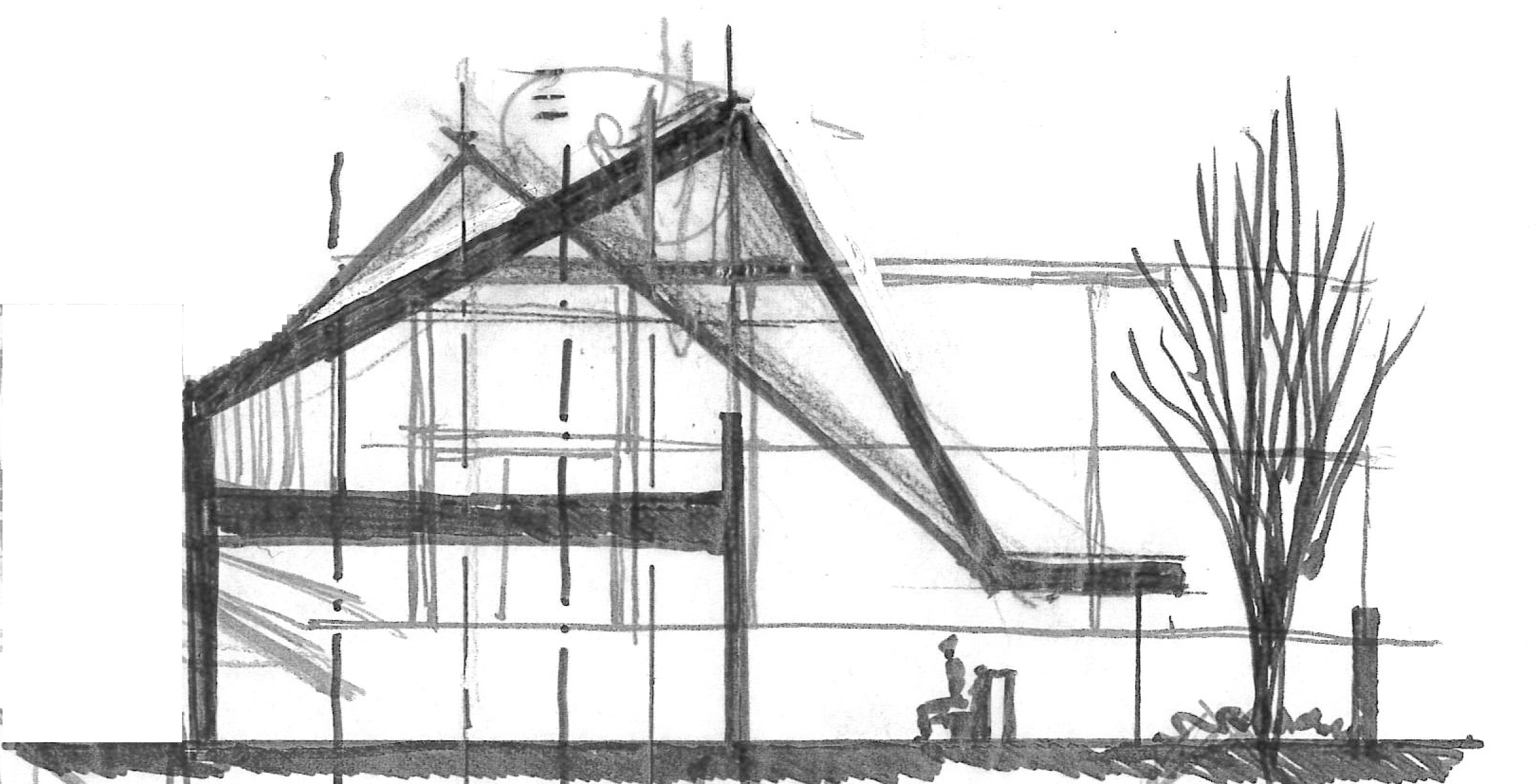 design processでは、各プロジェクトでのスケッチから出来上がりの流れをお送りしたいと思います。 吉田耳鼻咽喉科 少し傾いた三角屋根が、まるでおじぎを…